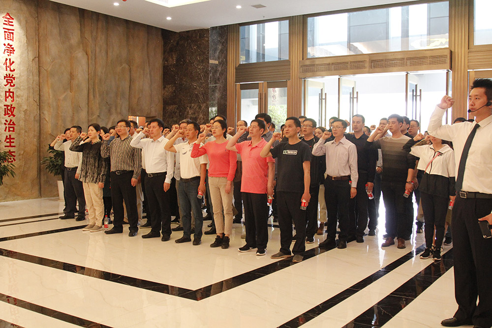 坚定信念,牢记宗旨。“我志愿加入中国共产党,拥护党的纲领,……”在集团党委书记、董事长李仕川的带领下,一声声、一句句掷地有声、铿锵有力的入党誓言响彻在序厅中,全体人员举起右拳,在党旗下接受心灵的净化和洗礼,重温入党时的理想和誓言。